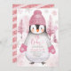 Pink Penguin knitted Hat Snowflakes Baby Shower Invitation
