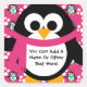 Pink Penguin Party stickers, easy to add a name or other text to before ordering, great for adorning your envelopes for holiday parties, birthday parties, and skating parties!