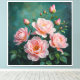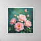 Pink Peonies Artwork on Emerald Green Canvas Print