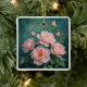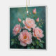Pink Peonies Artwork on Emerald Green Ceramic Ornament