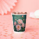 Pink Peonies Artwork on Emerald Green Paper Cups