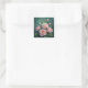Pink Peonies Artwork on Emerald Green Square Sticker