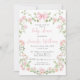 Pink Peonies Floral Wreath Bow Baby Girl Shower Invitation