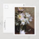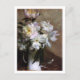 A postcard featuring the painting, Peonies in a Vase (1887) by Charles Courtney Curran, an American Impressionist artist. The artwork depicts a flower vase filled with white and pink peonies.