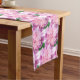 Table runner to accent your table decor is shown with a pretty pink peonies print on a white background colour.