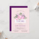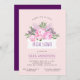 This bridal shower invitation features a beautiful spring watercolor floral graphic. A white banner is accented with gorgeous pink peonies, green leaves and dark purple floral buds.