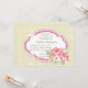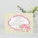 A quaint, oval decal with pink, blue and raspberry trim and a peony cluster corner makes a lovely invitation for a woman's celebration.
