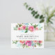 Such pretty pink peonies. They create an upper and lower border for the announcement of a 90th birthday party celebration. Three lines of text let you customise your greeting on the front of the birthday invitation postcard. The birthday party details are on the back. The peonies have dark pink centres and soft pink outer petals. The modern botanical design includes deep olive leaves and turquoise blue vine outlines. All text can be edited.