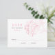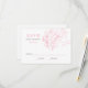A delicate RSVP card adorned with a single pink peony bloom and grey accent text on a crisp white background. The design features a response deadline, name line, and accepts or regrets checkboxes for easy guest replies. All wording is editable to coordinate with your wedding suite timeline.