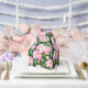 Favour Box in soft pink peonies, scattered against a dark green, background of leaves