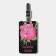 Elegant luggage tag done in black with tiny white polka dots and watercolor artwork of a pretty pink peony flower bloom. Personalise the pink text, on the front and back, to read what you want. Lovely way to spot your luggage from a distance.