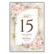 Pink Peony Floral Gold Script & Frame Wedding Table Number
