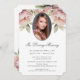 Elegant pink floral photo memorial service/celebration of life/funeral/in loving memory invitation featuring a photo with blush pink peonies.