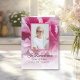 Remember your loved one and celebrate their life with the pretty Pink Peony Flower Funeral Service Folded Program. This elegant custom flowery memorial service timeline features a digitally painted floral photograph of magenta pink peony flower blossom petals with a white gradient overlay. Customise it with a picture of the deceased, birth and death dates and the order of ceremony of their celebration of life tribute church service.