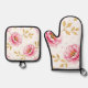Pink Peony Flowers Golden Leaves Pattern Oven Mitt & Pot Holder Set