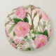 Pink Peony Flowers, Leaves & Buds Pattern Round Cushion