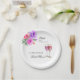 Personalise this Petals and Prosecco Bridal Shower paper plate, designed to add a touch of elegance and charm to your special celebration. These plates feature an arrangement of watercolor pink, lilac, and peach peonies with greenery, their delicate petals beautifully capturing the essence of springtime romance. This charming bright floral design also features sparkling pink prosecco in elegant champagne flutes, perfectly symbolising the joy and festivities of the occasion. The crisp white background enhances this plate's elegant and chic look. A perfect addition to your bridal shower party or picnic, combining sophistication with convenience.