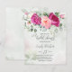 Pink cerise magenta peony roses eucalyptus greenery watercolor bridal shower budget invitation template.