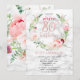 Pink Peony Wreath Rose Gold Marble Surprise 80th Invitation