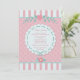 A charming invitation in soft pink, white and light teal that's perfect for a baby shower or a little girl's birthday celebration.