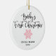 Pink Personalised Baby Girl First Christmas Ceramic Ornament. Personalise with your custom information on both front and back.