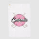 A Custom Pink Personalised Two Clubs Monogram Golf Towel: designed with style and performance in mind, this elegant pink golf towel offers a unique, personalised touch—customised with her name. Perfect as a birthday gift, holiday surprise, or a special treat for a stylish golfer...For women who want to make a statement on the green, you can also buy matching golf balls and other accessories.