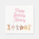 Pink Personalised Party Animal Birthday Napkins featuring watercolor animals in party hats. Customise with your birthday honoree's name.