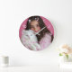 Turn cherished memories into timeless decor with this custom photo wall clock. Featuring a sweet pink background, modern numbers, and space for your favourite photo and name, it's perfect for a girl's bedroom, playroom, or as a heartfelt gift. Add a photo of your child and their beloved pet for an extra personal touch.