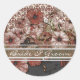 Bride and Groom Pink Petunia On Damask Stickers With Brown Laced Linen