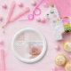 Pink Photo Birth Announcement Gingham Footprints Paper Plate