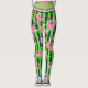 Cuts pink sloths on stripy green watermelon background. They wake up for pickleball. 🦥 Leggings with pink pickleball motif