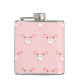 A cute, tiled, repeating pattern of a pigs face. The pigs face has  small black eyes, floppy ears, a large snout, but no other features.