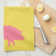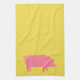 Pink Pig on Yellow Tea Towel