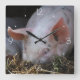 Pink pig photo square wall clock