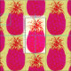 Pink Pineapple Fruit Vintage Pattern on Beige Fabric