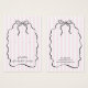 A cute whimsical earring display card, featuring a Parisian style pink and white pinstripe background, handwritten doodle script and a coquette style ribbon frame.