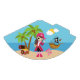 This design on these cute pirate birthday party hats features a pirate girl dressed in pink standing on a beach by a palm tree and a treasure chest full of gold. A pirate ship can be seen in the distance, anchored in the ocean. Some graphics by Pretty Grafik at Mygrafico.com. Some graphics by Zenware Designs at MyGrafico.com http://www.mygrafico.com/zenware-designs/aff_14.html .
