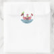 A deep blue sea with a pink pirate ship with the female captain and her trusty green parrott. Great for talk like a pirate day or kids pirate birthday parties.