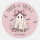Pink Plaid Bow Cute Ghost Girl Halloween Classic Round Sticker