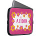Cute girls name in floral frame. Happy spring bold colours, fuchsia pink and yellow stiched flowers on plaid pattern.