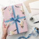 Pink Plaid Gingham Cow Skull Boho Wrapping Paper