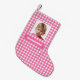 Pink Plaid Girl Photo & Name Rustic Gingham Checks Small Christmas Stocking
