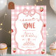 Pink Plaid Strawberry Coquette Bow First birthday invitation, Sweet One Girl 1st Birthday Invite, Editable Gingham Kids Birthday