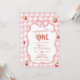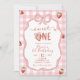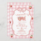 Pink Plaid Strawberry Coquette sweet one birthday Invitation