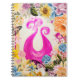 Mixed media illustration of a "Pink Plum Peacock" with colourful flowers by Alice Koko