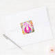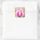 Pink Plum Peacock with colourful flowers Square Sticker
