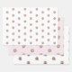 A pink poinsettia bouquet and a holly branch with berries arrangement are featured on these three sheets of wrapping paper. One with a pale light pink background and two are white backgrounds. The bouquet arrangements are watercolor illustrations. Printed on heavyweight 70 lb. uncoated matte (shown) or 80 lb. semi-gloss paper. The back side features grid guidelines for easy cutting. The 19"x29" sheets are packaged nicely for shipping, loosely rolled and are crease-free. See "About This Product" for more information.