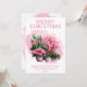Pink Poinsettia for Christmas card in blue for a festive Holiday greeting to family and friends.