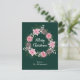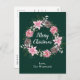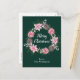 This fun and festive watercolor Christmas postcard can be personalised with a name or title. It features a watercolor Christmas wreath with pink poinsettias and holly on a dark green background. The text combines handwritten script and modern serif fonts for an elegant and sophisticated look.