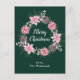 Pink Poinsettia Wreath Merry Christmas Holiday Postcard